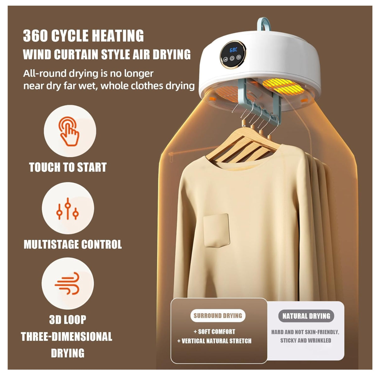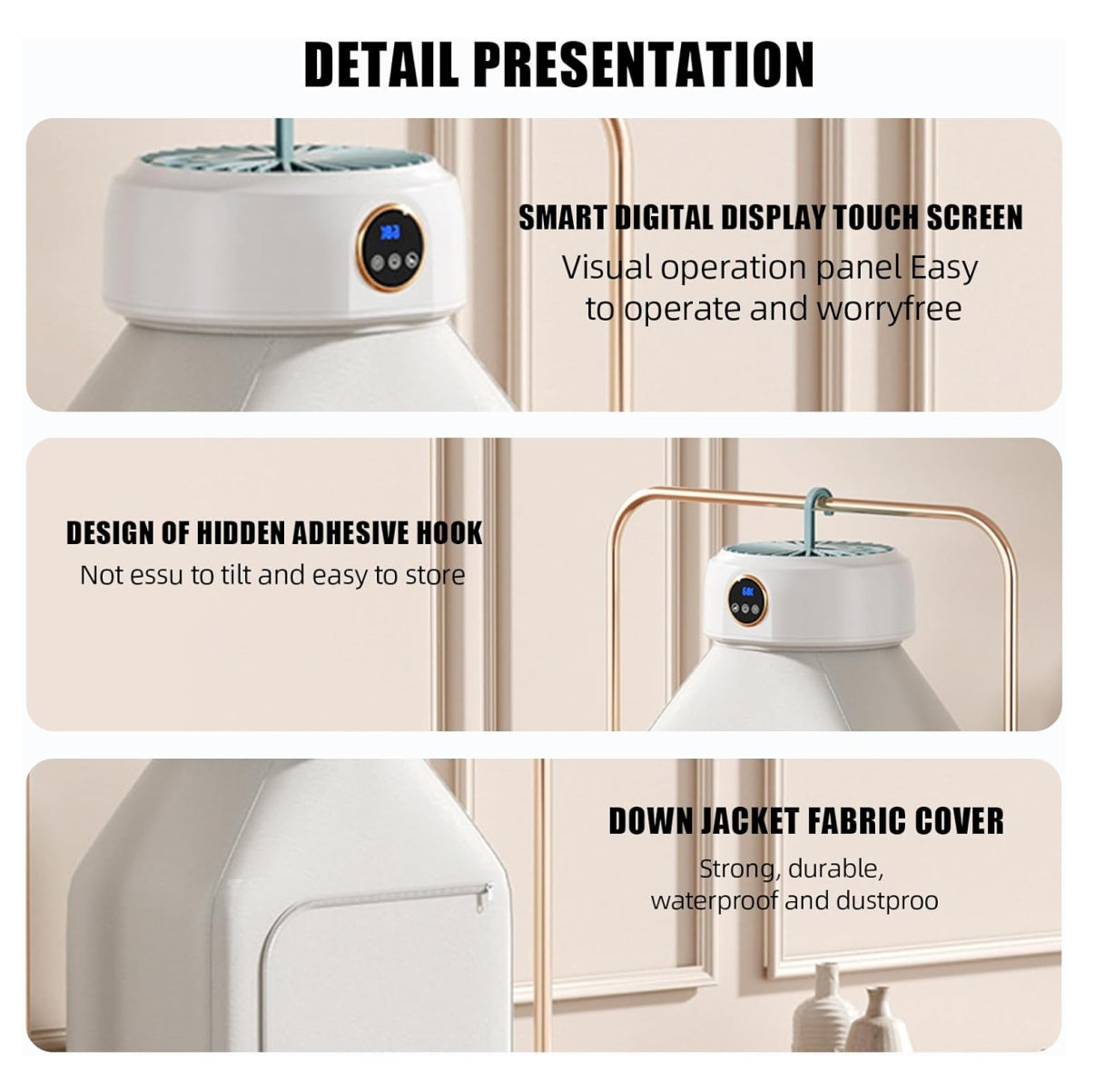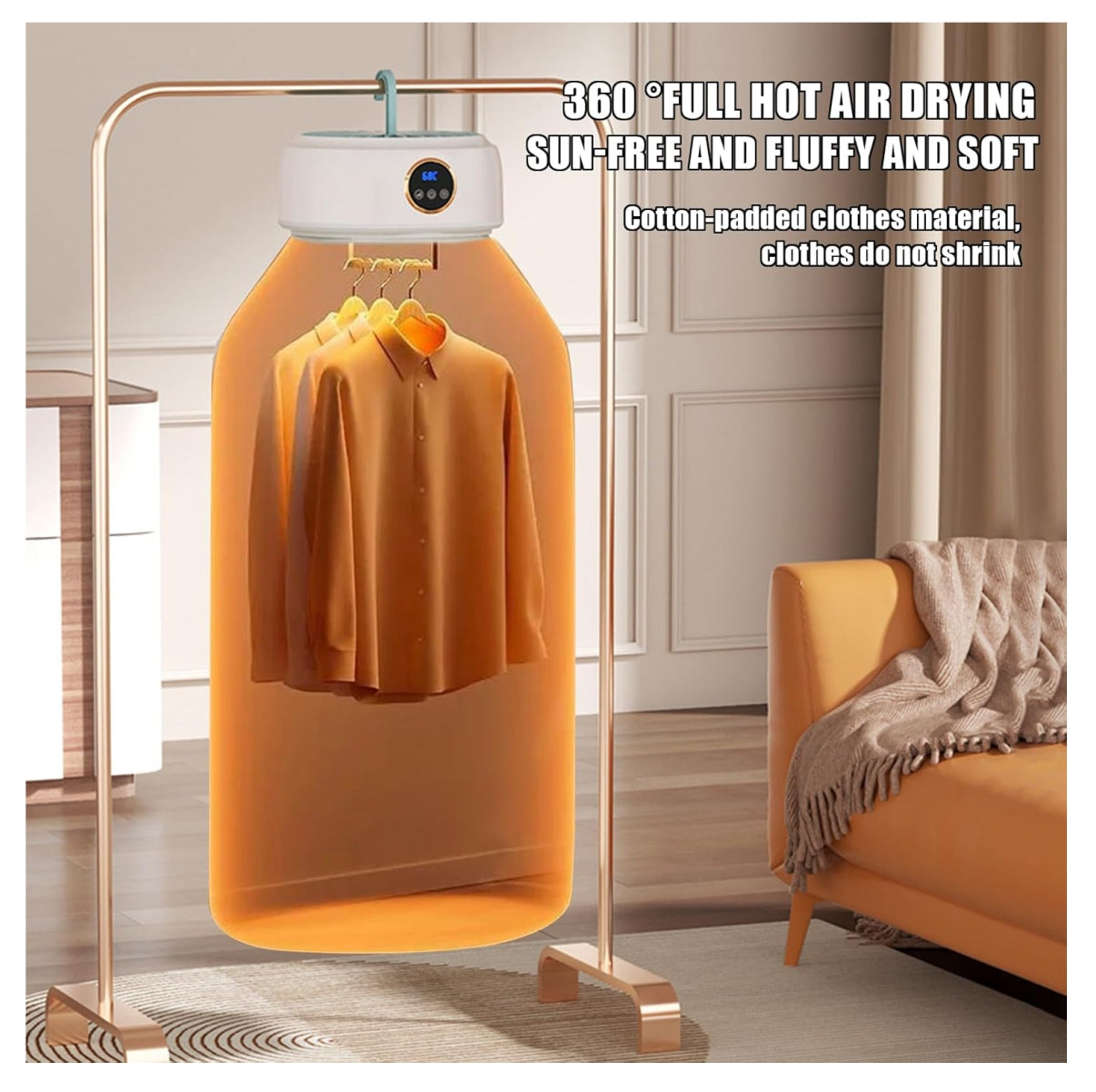 Con tecnología de control de temperatura y luz UV esterilizadora, esta secadora no solo elimina la humedad, sino también ácaros, polvo y bacterias. Su diseño plegable y compacto la convierte en la opción ideal para apartamentos, viajes, vacaciones o espacios con poca ventilación.