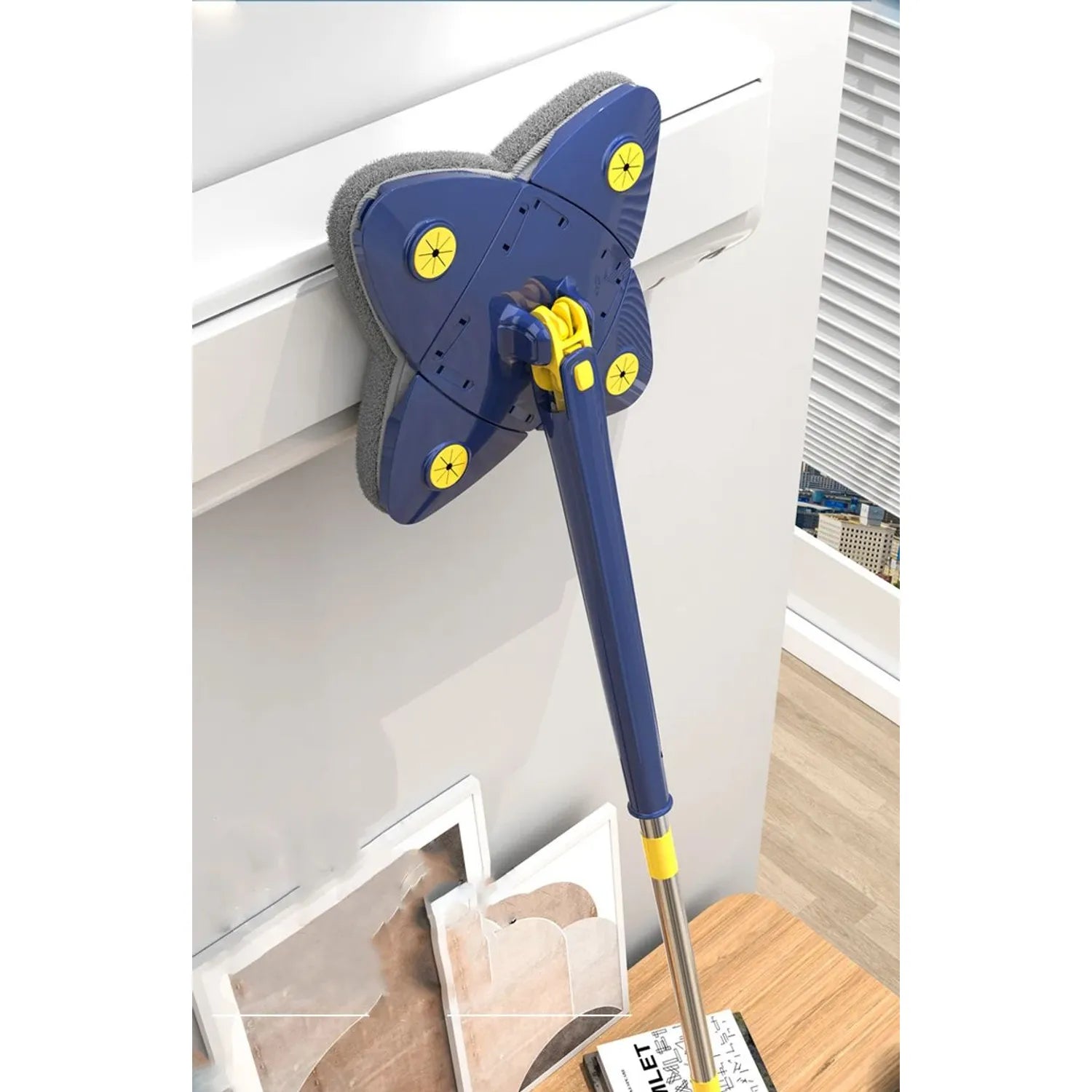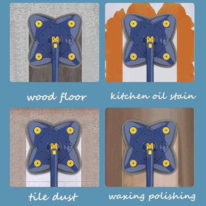 Optimiza tu limpieza diaria con el trapero ajustable 360°, diseñado para brindar resultados superiores con el mínimo esfuerzo. Gracias a su cabezal giratorio de diseño triangular y a su innovador sistema de escurrido manual, este producto ofrece una solución práctica, eficiente y ergonómica para el aseo del hogar.