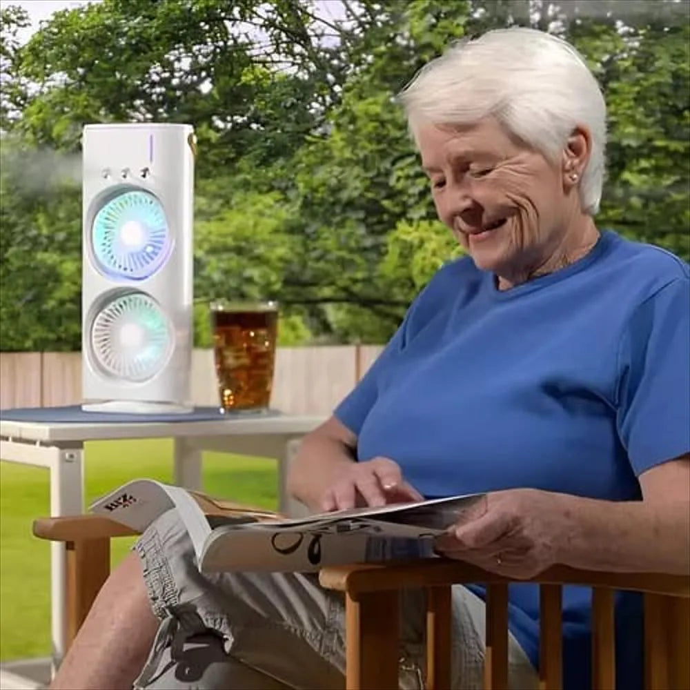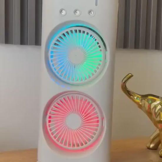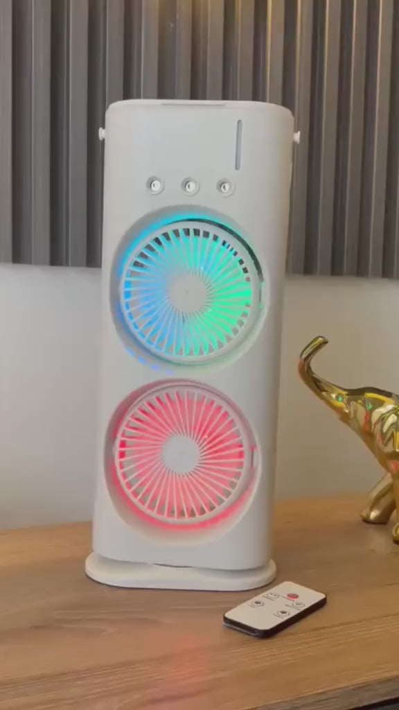 El Ventilador de Torre Doble con Humidificador es la solución ideal para refrescar y humidificar tus espacios de manera eficiente y silenciosa. Su diseño moderno, compacto y funcional combina ventilación potente con tecnología de pulverización de agua, proporcionando una experiencia de confort superior.